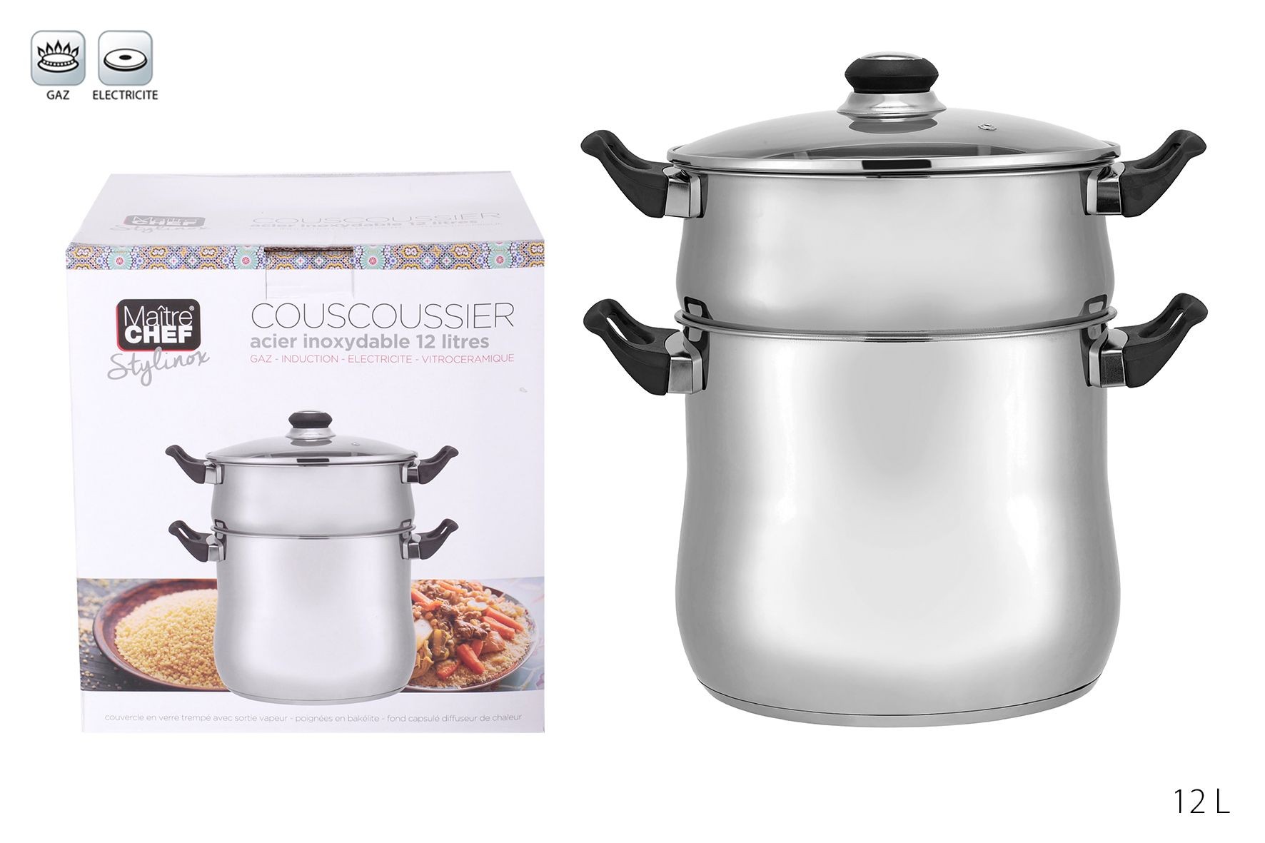 Ajoutez ce couscoussier inox ( 8 L ou 12 L) à votre panier et préparez des couscous, légumes vapeur ou plats mijotés dignes des meilleures tablées du monde.