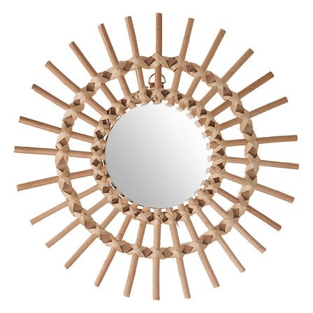 Ce miroir "Fleur" peut être entouré d'autres miroirs aux tailles variées, en rotin ou en osier.