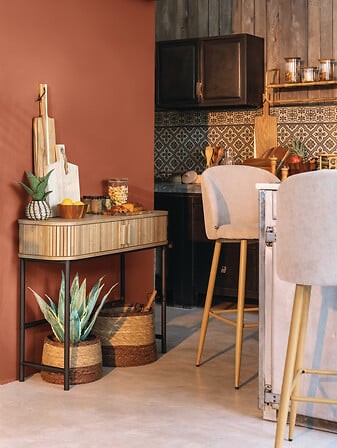 La console "Colva" sera idéalement placée dans une entrée, un couloir ou dans un salon. Elle offre une surface de rangement sous son plateau, dans laquelle vous pourrez ranger vos clés, des papiers ou encore votre portefeuille. Le plateau est une surface dédiée à la décoration, sur laquelle vous pourrez poser un vase, des photos ou tout autre accessoire déco.