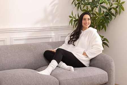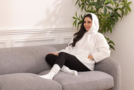 Le plaid à manches avec capuche en flanelle "Teddy" Atmosphera est un véritable cocoon de douceur à utiliser à la maison pendant vos moments de détente. Avec un livre ou devant la télé, il vous réchauffera pendant vos soirées d'hiver.