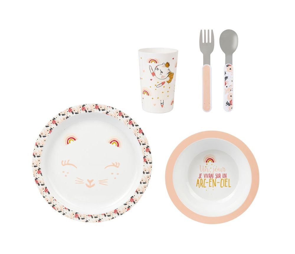 Set Repas Plastique Inox 'chat' un jour je vivrai sur un arc en ciel