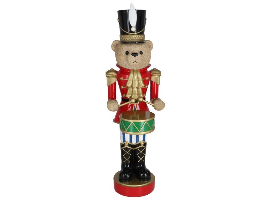 Son design détaillé, avec un adorable ours vêtu d’un uniforme festif et tenant un tambour, en fait un véritable élément central de votre décoration.
