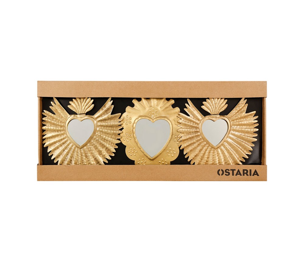 Lot de 3 miroirs décoratifs Exvoto – métal doré (✧ Design chic et modulable)