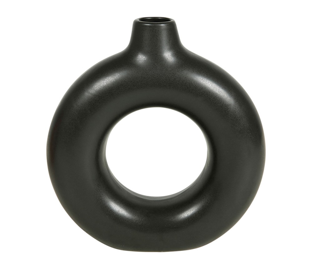 🏺 Vase déco en céramique – cercle noir (21 × 6,5 × 22,5 cm) | Élégance contemporaine