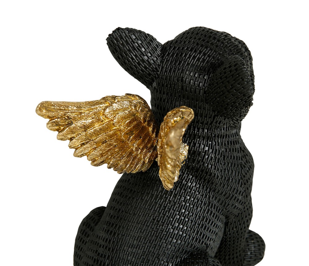 ✔️ Design original & tendance — figurine chien noir avec ailes dorées, idéale pour un intérieur contemporain ou bohème chic.