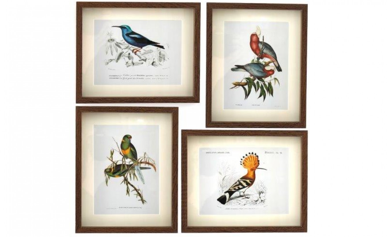 Lot de 4 cadres tableaux oiseaux 20x25cm