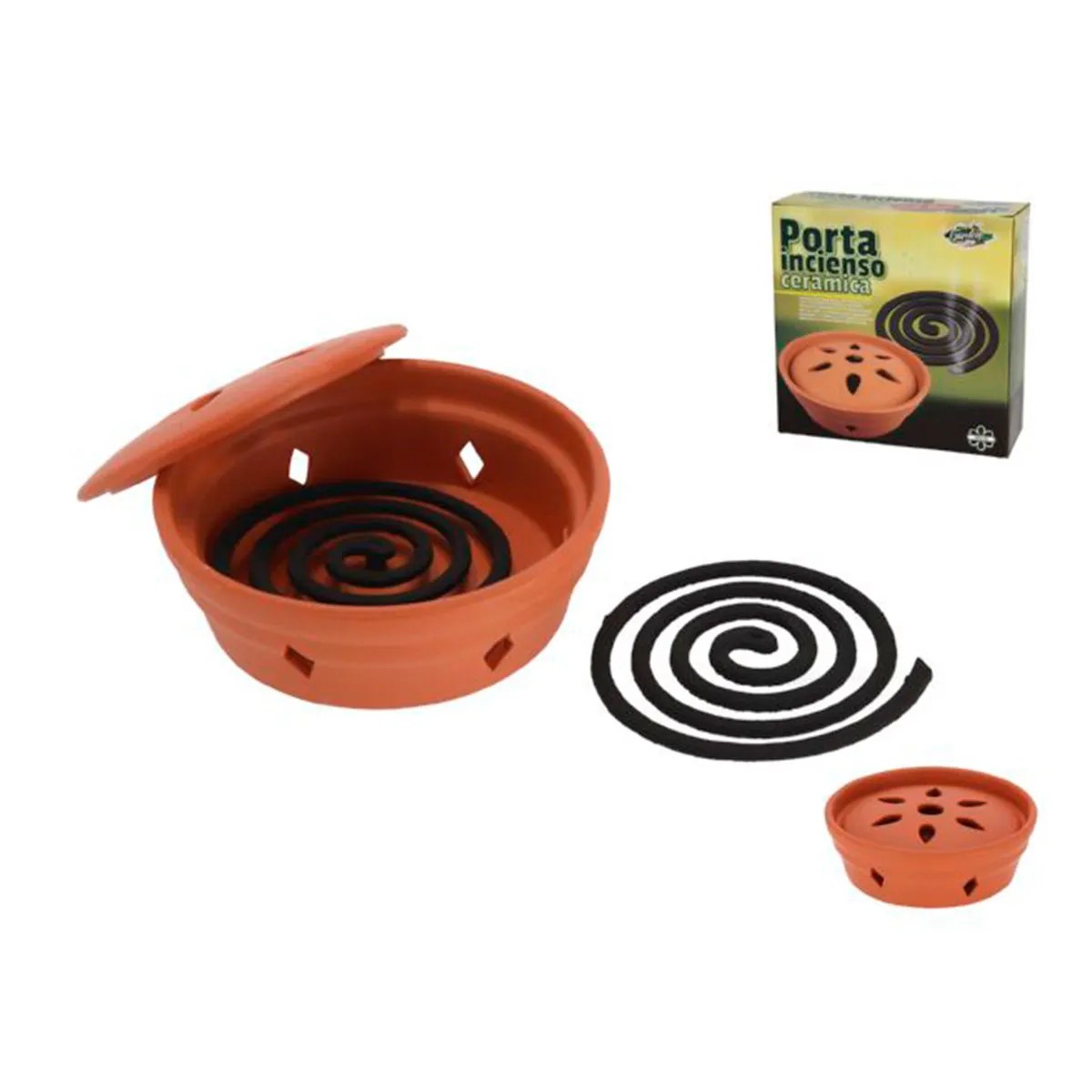 Lot de 2 Portes-encens en terre cuite + 1 spirale de citronnelle 16 cm