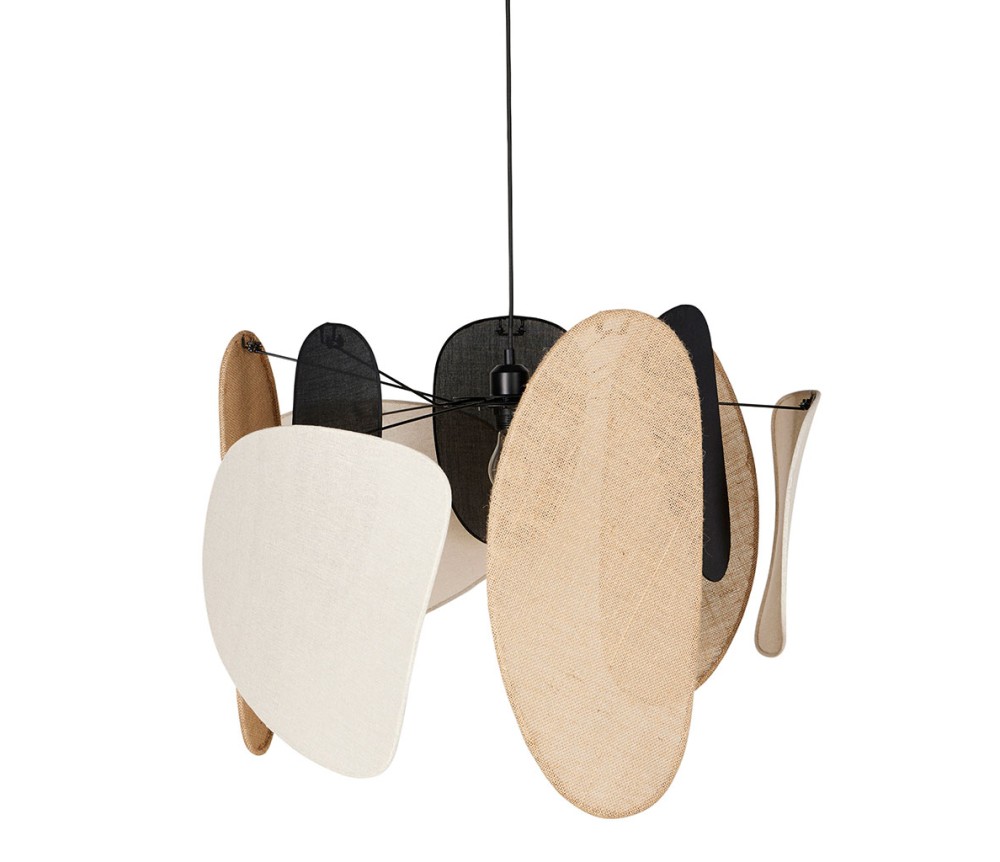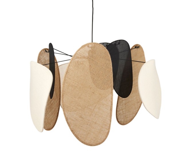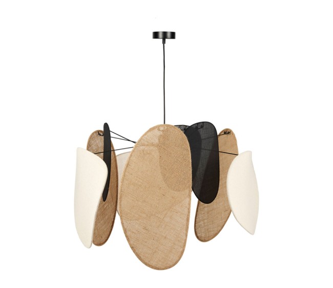 • Suspension "Almeria" en métal, lin et jute, de couleur beige marron et noir. Alimentation 60W, E27 (ampoule non incluse).