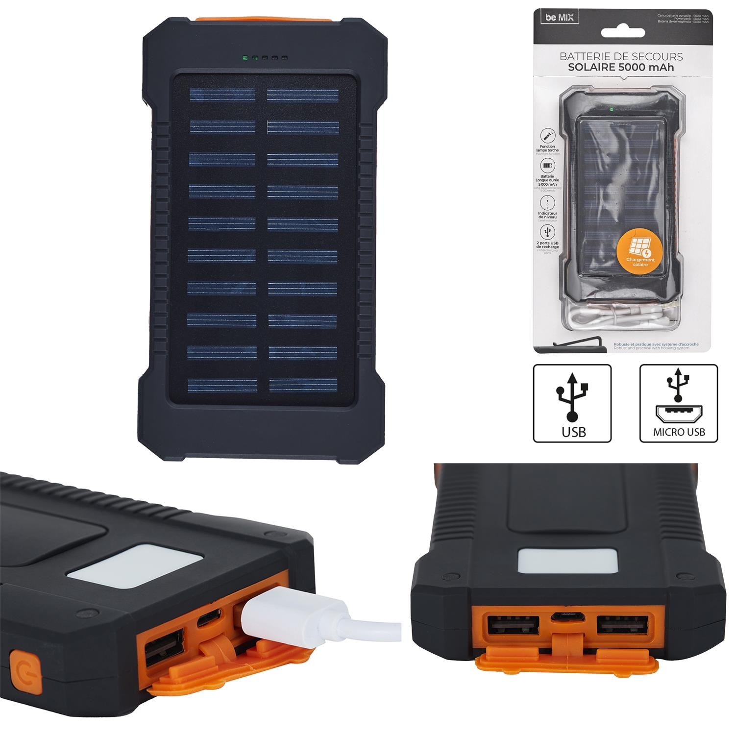 Ne tombez plus jamais en panne de batterie grâce à cette batterie externe solaire 5000 mAh. Compacte et pratique, elle vous permet de recharger vos appareils électroniques où que vous soyez, même sans prise électrique.