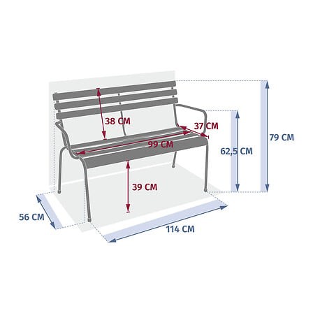 Dimensions : L 114 × P 56 × H 79 cm (Hauteur d’assise : 45 cm)