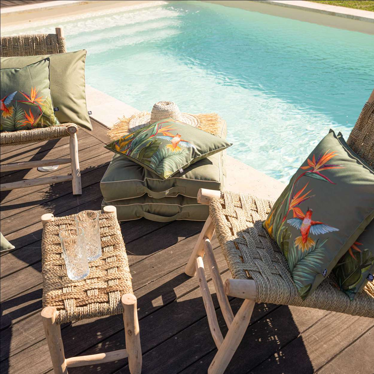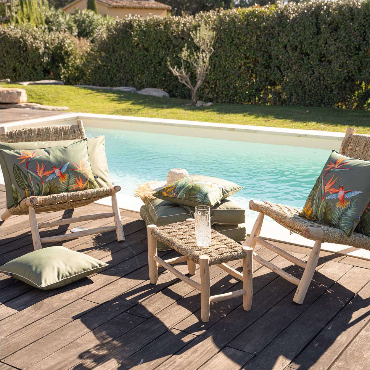 👉 Les coussins outdoor sont conçus pour allier confort et durabilité face aux intempéries