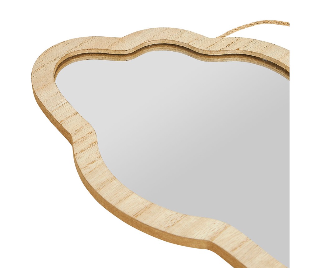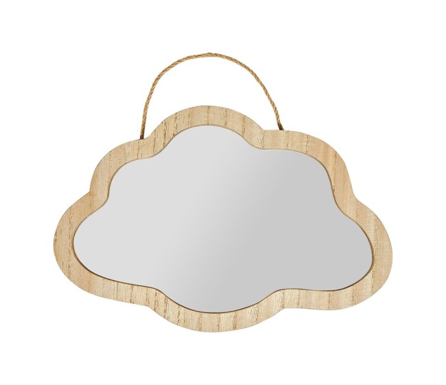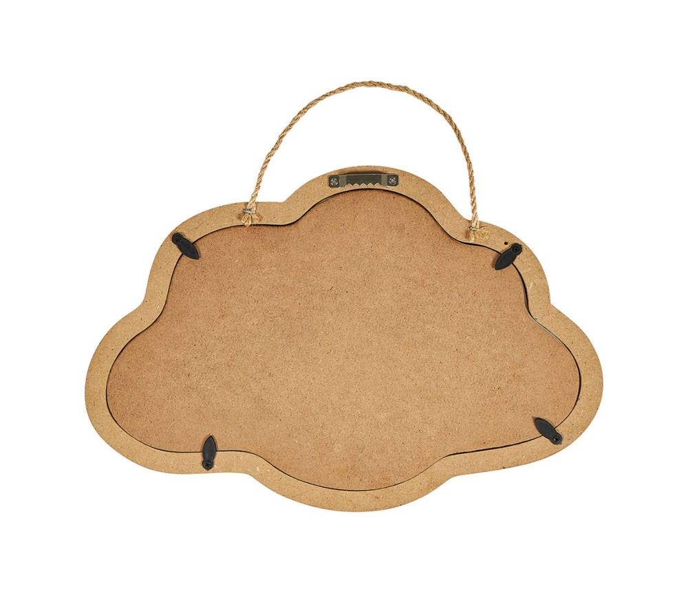 Miroir décoratif en forme de nuage. Coloris naturel. Suspendu par une corde. Dimension 36xH20cm.