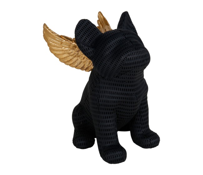 Figurine chien en polyrésine noir avec ailes dorées – déco originale 14 × 20 × 20 cm
