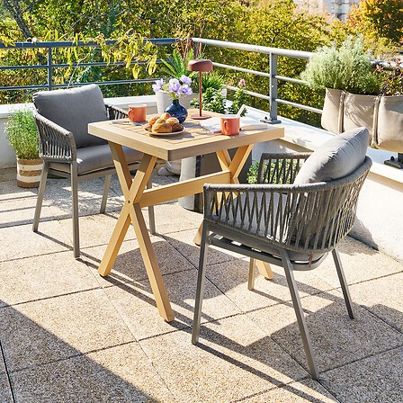 Table de jardin carré XENIA Eucalyptus 2 places - Acier, Eucalyptus