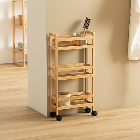 Desserte à roulettes fine 3 niveaux bambou – chariot rangement mobile